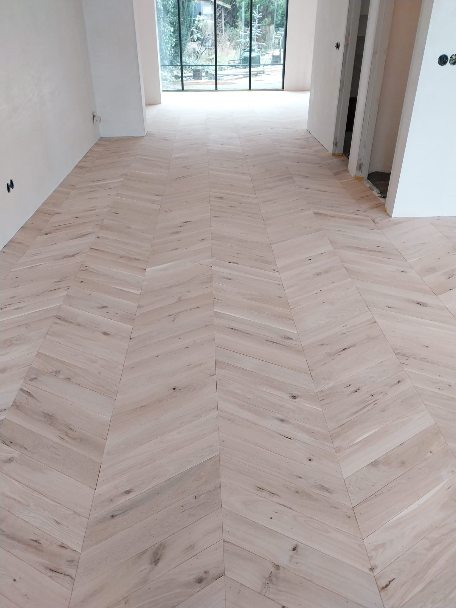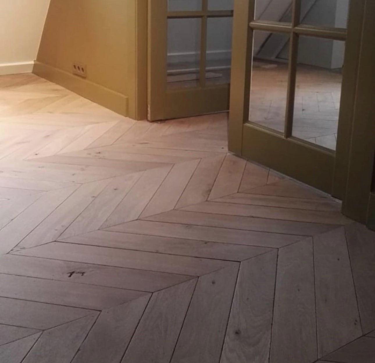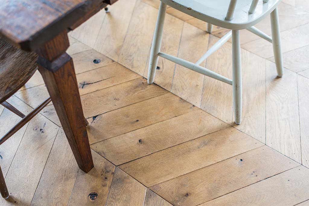 – Een eiken vloer gelegd in Hongaarse punt motief.